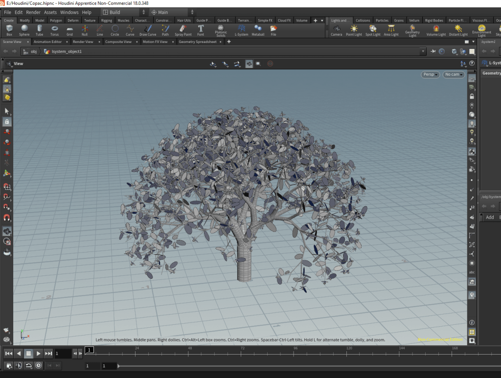 In this Houdini project, I experimented programming an LSystem with the Turtle language. By incrementing the number of generations used in the LSystem, I was able to simulate different stages of growth in a tree.