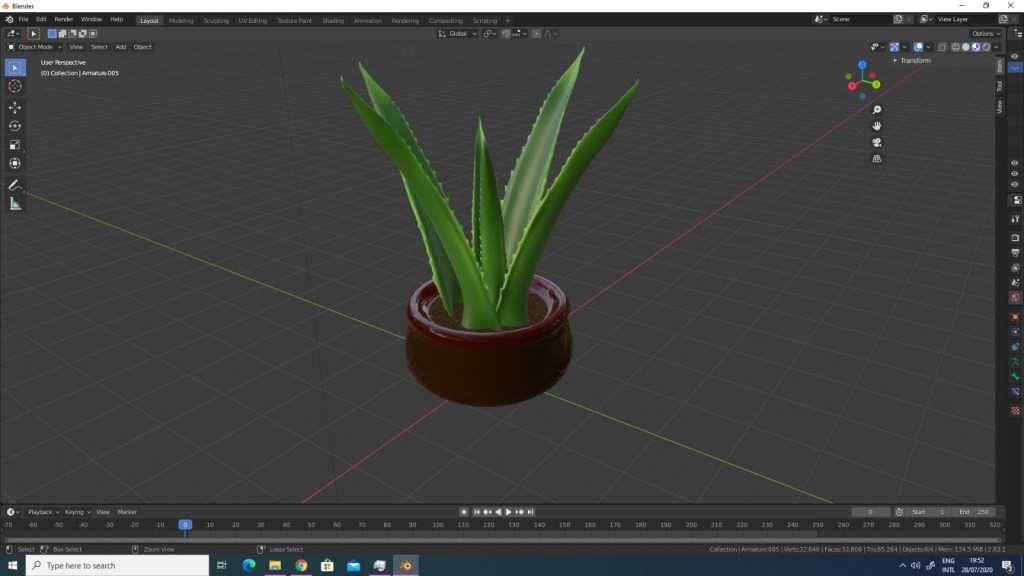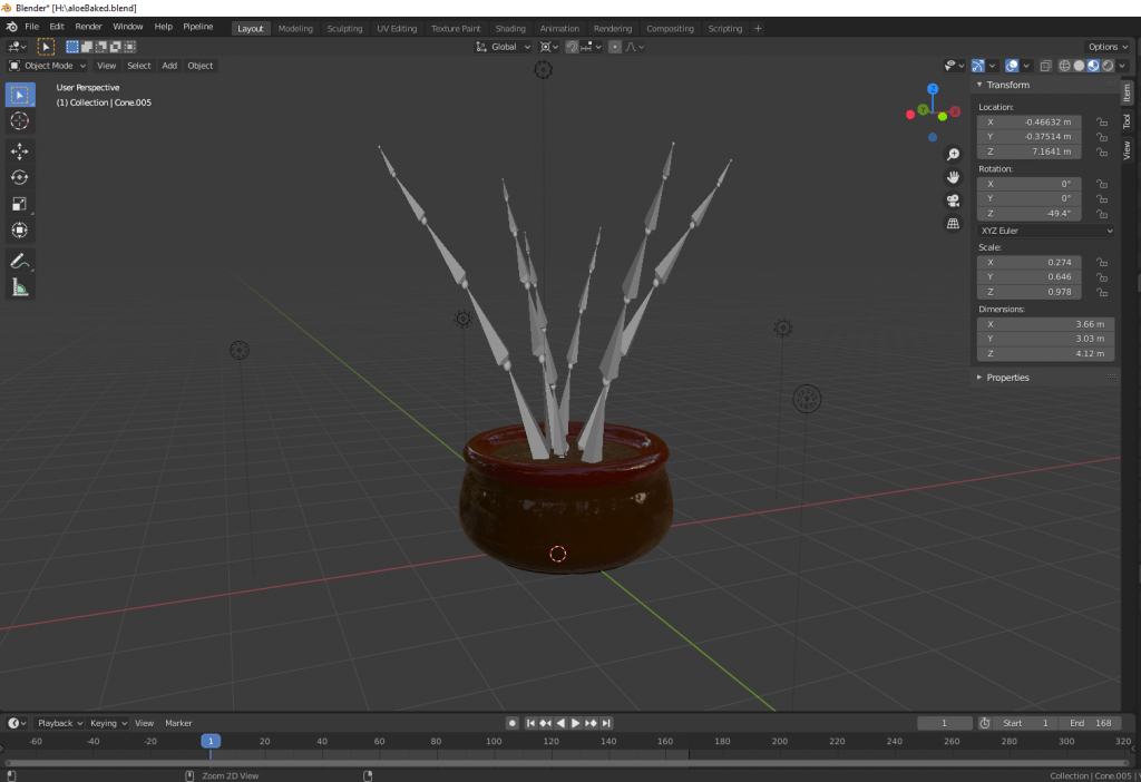 This is a mini project made from scratch in Blender, representing an animated Aloe Vera plant.